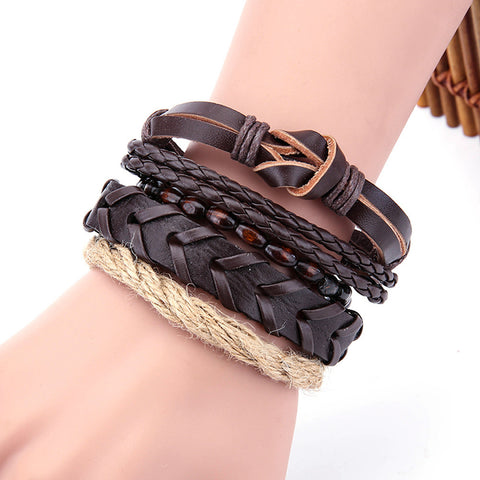 Fashion Women Multilayer Handmade Bangle Handmade Bracelets Leather Cool